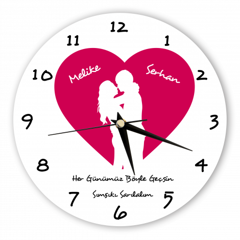 Çiftlere Özel Kalbim Senin İsim ve Mesaj Yazılı Duvar Saati