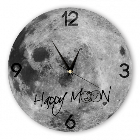 Happy moon mutlu ay tasarımı, süblimasyon (ısı transferi) baskı tekniğiyle saatinizin yüzeyine uygulanmaktadır.