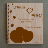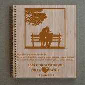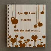 Ahşap albüm üzerine lazerle yakma işlemi yapılmaktadır, ömür boyu kalıcıdır asla çıkmaz.