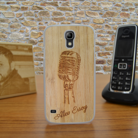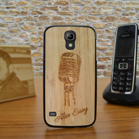Kişiye Özel Samsung Galaxy S4 Mikrofon Tasarımlı Ahşap Telefon Kapağı