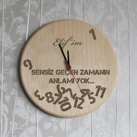 Sevdiğinizin İsmini yazabileceğiniz bu ahşap duvar saati sevginizi tarif edebilmeniz için güzel bir ürün.