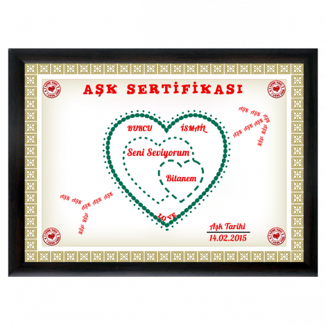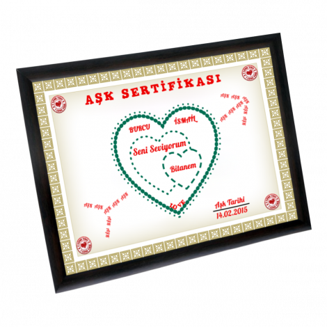 Aşkınıza, sadece ona özel yapılmış kişiye özel aşk sertifikası verin.