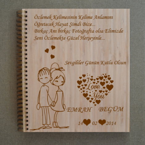 Ahşap albüm üzerine lazerle yakma işlemi yapılmaktadır, ömür boyu kalıcıdır asla çıkmaz.